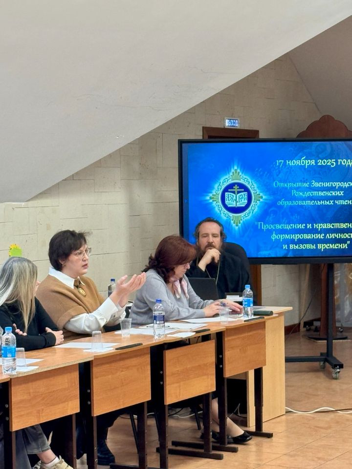 Затем, в актовом зале Православной Гимназии во имя прп Саввы Сторожевского г. Звенигорода состоялось торжественное собрание участников Рождественских образовательных чтений. В процессе собрания прозвучали интересные доклады., а также комментарии, предложения и мнения педагогов, относительно обсуждаемой темы Рождественских чтений: "Просвещение и нравственность: формирование личности и вызовы времени". По окончании встречи, в трапезной Александро-Невского храма всем участникам встречи был предложен праздничный обед.