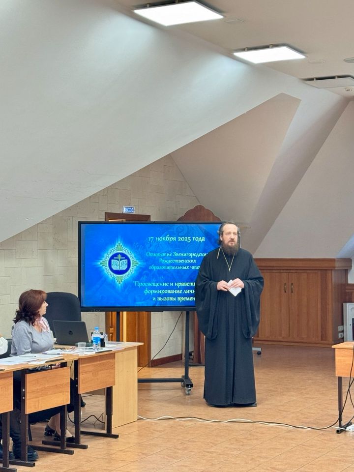 17 ноября состоялось открытие Звенигородских Рождественских образовательных чтений. По сложившейся традиции, в Вознесенском соборе г. Звенигорода состоялся молебен, который совершил заместитель благочинного Звенигородского благочиннического округа иерей Николай Куренков, в сослужении помощника благочинного по религиозному образованию и катехизации, настоятеля Александро-Невского храма г. Звенигорода протоиерея Александра Карлюка и настоятеля Казанского храма г. Звенигорода священника Михаила Федорова при участии директоров, сотрудников и педагогов образовательных организаций г. Звенигорода.